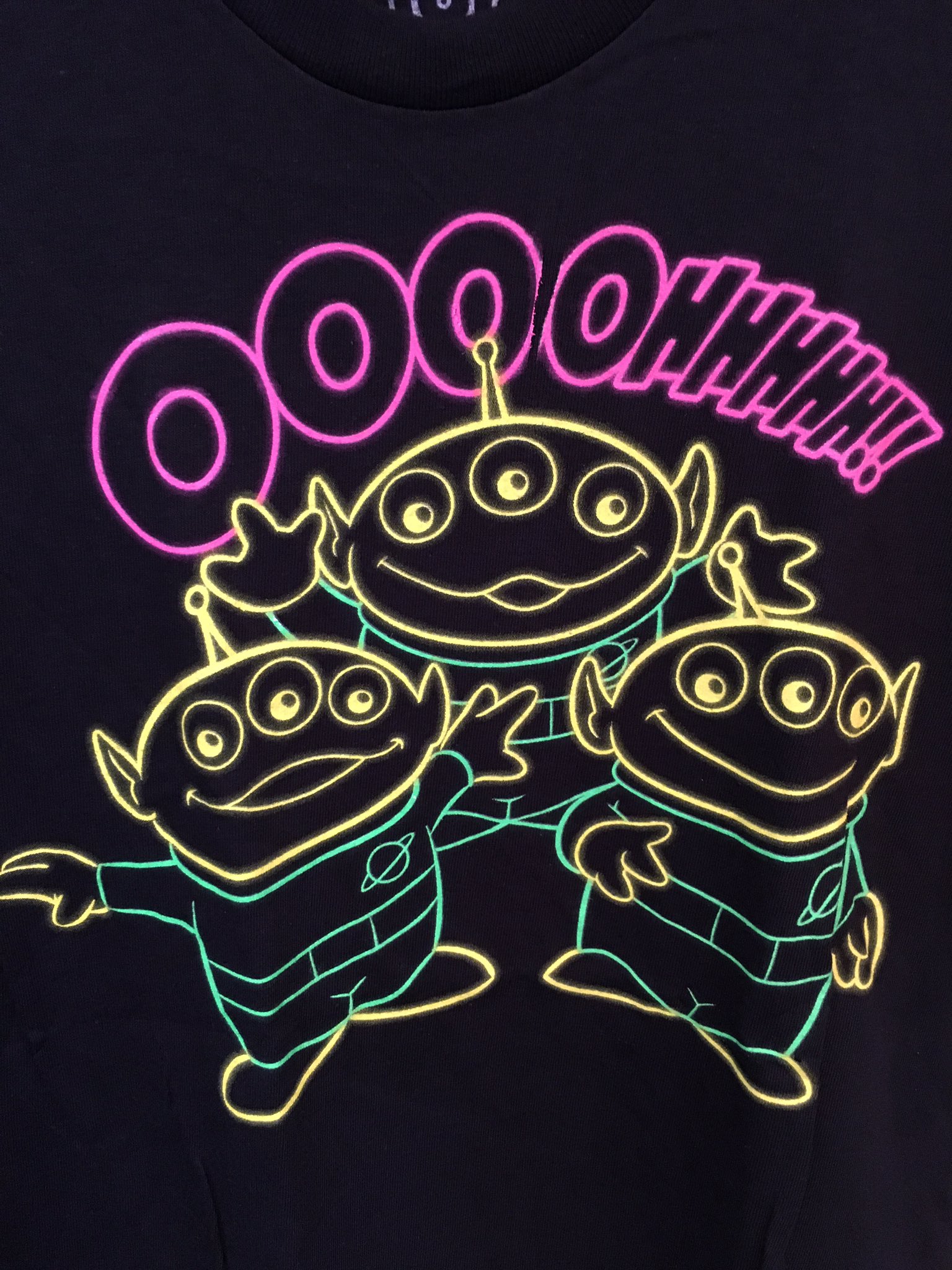 アンティークマイクs 楽天 Twitterren アンティークマイクs リトルグリーンメン Tシャツ グリーンとブラックの2種 ブラックはプリント部分がグロウ素材で暗闇で光ります トイストーリー ピクサー