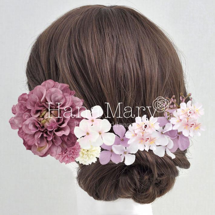 花飾り アレンジ名 ダリアと小花の薄ピンクアレンジ 組み合わせ自由 花の髪飾り専門店 Hanamary ハナマリー